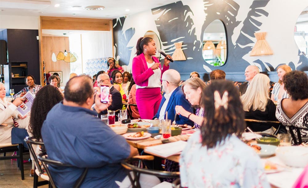 Guests enjoyed an amazing and bold lunch curated by Canje, bursting with beautiful Caribbean flavors that matched the energy of the day—set to the soulful sounds of acoustic guitar and vocals by the talented Sammy J, creating a warm, vibrant backdrop for connection and celebration. Special thanks to Flowers by Flo, who created the vibrant floral arrangements and bouquets for our Luminaries.